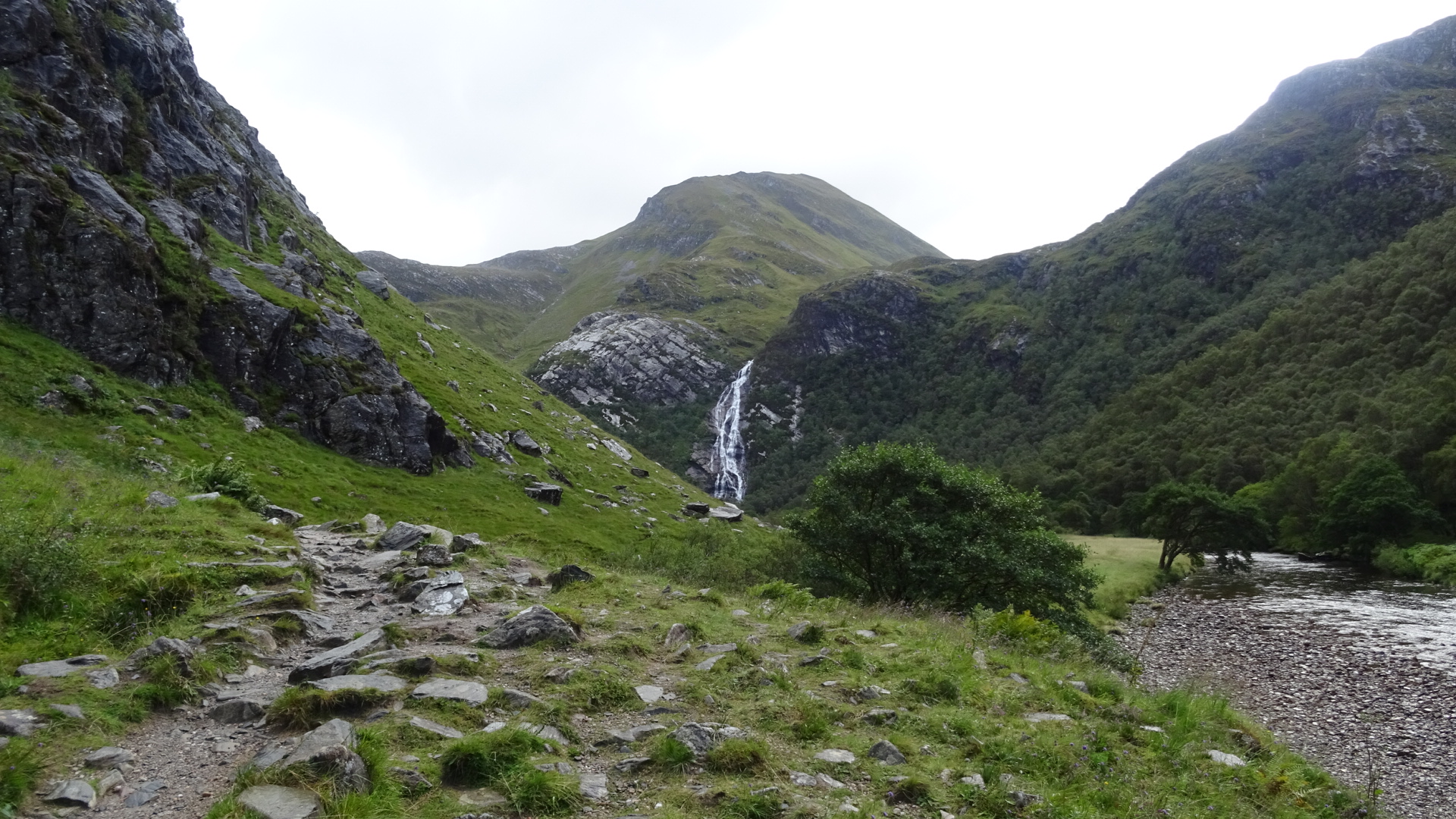 As i awoke on my first day i could see that Ben Nevis was covered in cloud so i studied the map (looked at it) and decided that there was a riverside walk that would take me to the falls direct from the campsite.