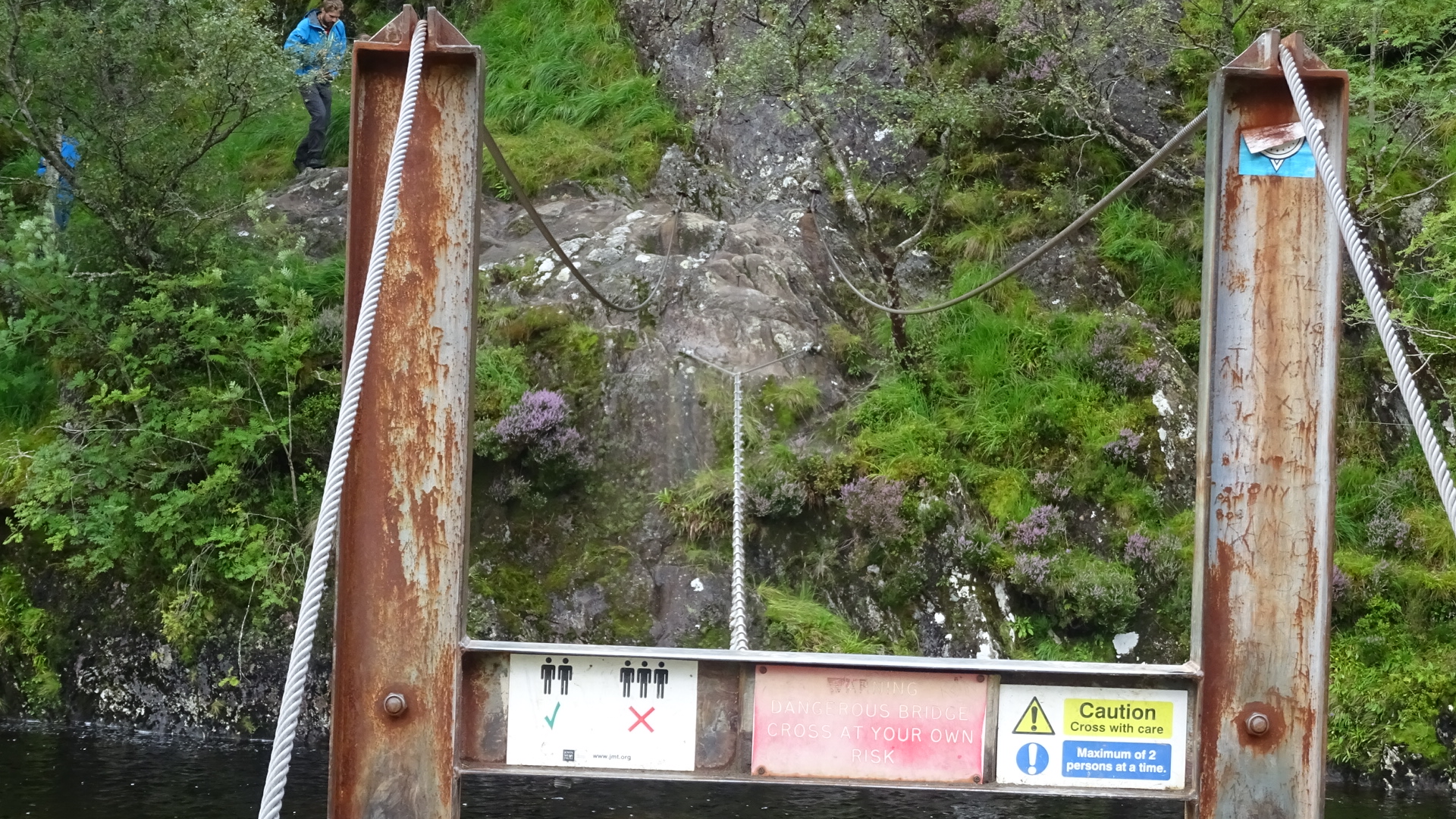 As i neared the falls i could see that there was a wire bridge crossing the river, after watching a couple of people wobbling there way across (one who could barely reach the top cables) i decided to go for it, it wasn’t as bad as i had expected until i reached the middle, if it wasn’t bad enough that the cable twists under your feet there was also a bit of a breeze so the bridge swayed to the right quite a bit, i eventually made it across and made my way to the falls(which was another boggy experience)